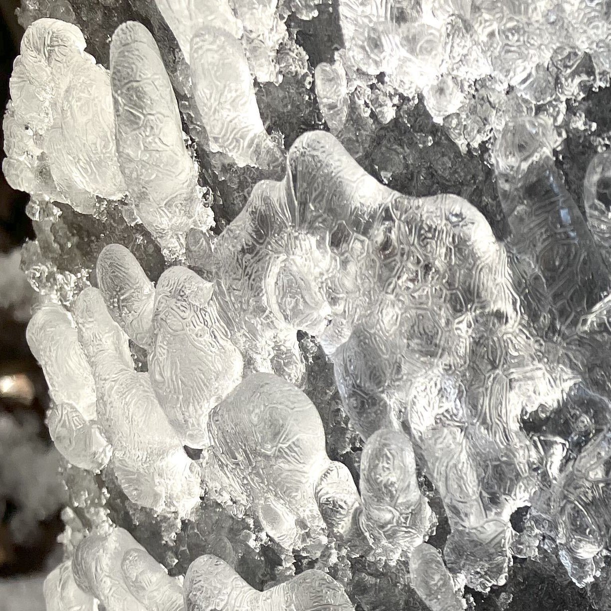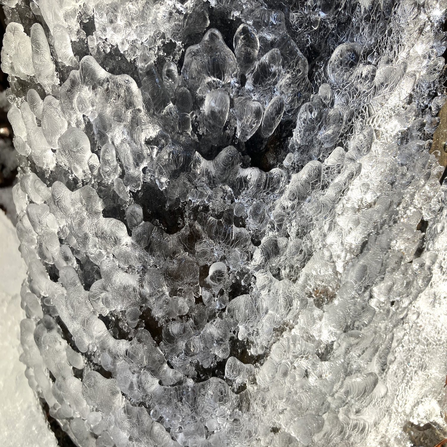 蛇口近くでかかった水しぶきが凍って